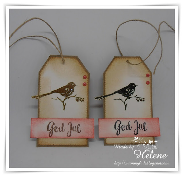 Today I used some design paper from Chocolate Baroque's black and white series and inked it with distress inks in blue and yellow. Same distress ink is used on the oval backing of the sentiment and then I just added the die cut sentiment and some baker's twine. The design paper is very thin and delicate but holds ink really well, making it perfect for colouring to needs and desire.